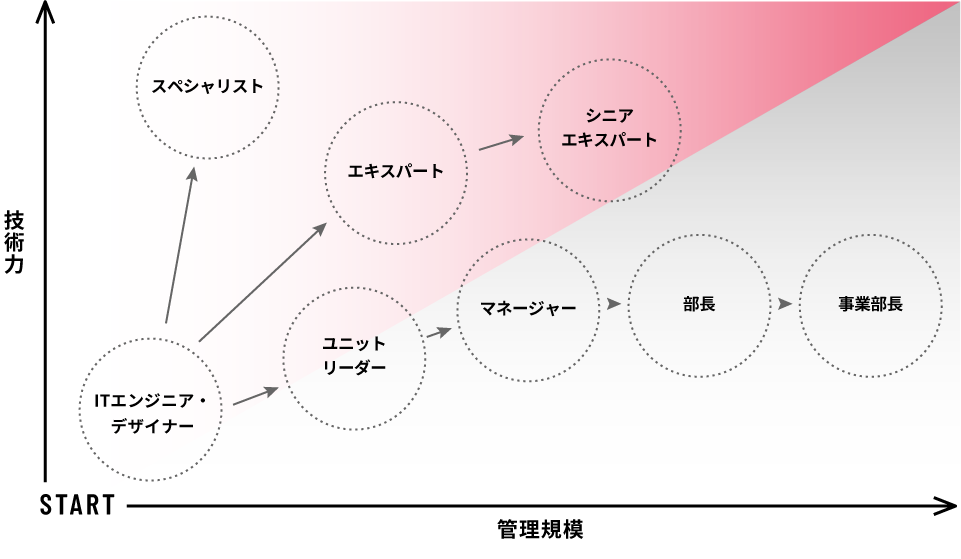 当社では、一人ひとりの考えや目標に沿ったキャリアパスを共に考え、