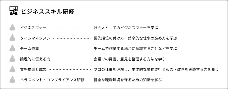 入社後にスムーズかつ良いスタートダッシュを切れるよう準備を整えていただけます。