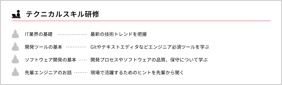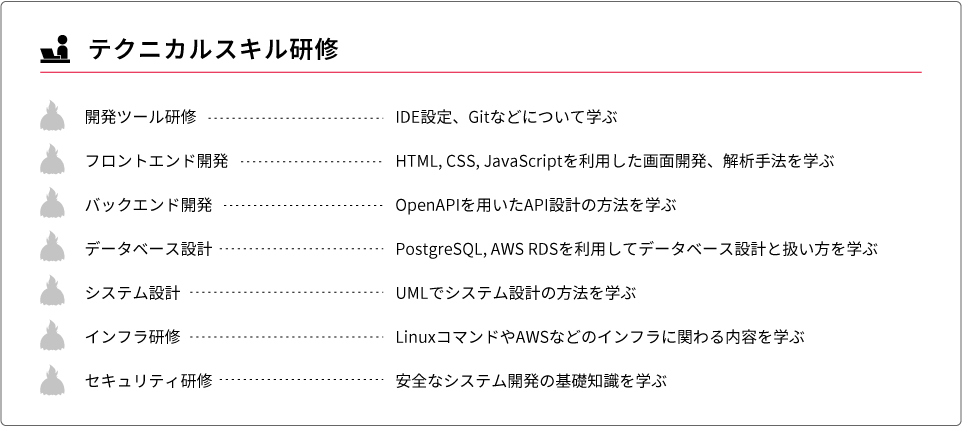 当社では、現場で即戦力として活躍できるエンジニアを育成するため、