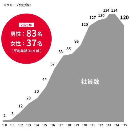 グループ全体で社員数は減少する結果となりました。