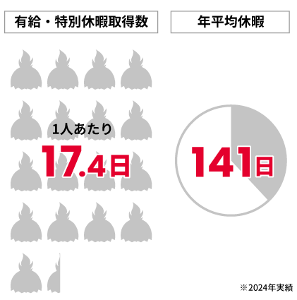 有給休暇取得率は前期より微増となりました。平均で17日超えをキープできており、取得率向上施策が定着していることがわかります。
