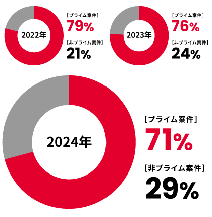 プライム案件の割合は高い状態を継続中。